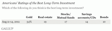 Gallup asked a similar question from 2002 to 2010, but that question did not include gold. Real estate, savings accounts, and stocks<... (more)
