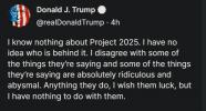 Trump Disavows Project 2025 Transition Plan Touted by His AcolytesFormer President Donald Trump on Friday disavowed the Heritage Foundation's Project 2025 transition plan which sought to "decimate the deep state" and staff the government with conservatives.
