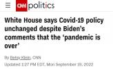 CNN: White House Says Covid Policy 'Unchanged' Despite Biden's Comments That The 'Pandemic is Over'"President" Joe Biden's handlers stepped in on Monday to clarify that his comment that "the pandemic is over" does "not mark a change in policy" and the administration has "no plans to lift the Public Health Emergency."