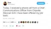 CHIPOTLE CAVES? Fired St. Paul Manager Says She's Been Offered Her Job Back [Update: Status Unclear]On Sunday, Chipotle announced they're "rethinking" their decision to fire one of their managers for asking a group of suspected dine and dashers to pay up front before preparing their meal.