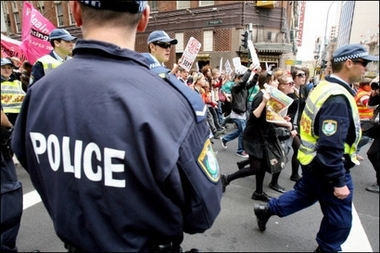 ![]() A pro-Bush organization have been allowed to demonstrate within the 3-mile-wide security cage that has been erected around the business district in Sydney for the APEC summit, while authorities have banned other protest groups from even marching up to the police line outside in a brazen display of favoritism and double standards. Members of the Stop Bush Coalition are now promising non-violent civil disobedience as the only recourse to counter court orders that have set the precedent to effectively ban free speech in Australia. The Aussies for ANZUS group, a Neo-Con organization that professes its love for Prime Minister John Howard and President George Bush, has been granted permits to access the restricted security zone and assemble near the InterContinental Hotel, where Bush will be staying for the duration of the conference. Police restrictions on banner sizes and other measures have also been waived for benefit of the organization. In contrast, the Stop Bush Coalition have been told by the NSW Supreme Court that they will be arrested if they merely attempt to march up to the police line outside the security perimeter. A list of other potential protest routes presented to the authorities was also rejected, effectively characterizing a complete ban on any form of protest anywhere in the city. In Australia, free speech is only permitted for those who agree with the government and the Neo-Con policies of Prime Minister John Howard. "PROTESTERS have been denied permission to march to the edge of police lines during an anti-APEC rally in Sydney on Saturday," reports the Courier Mail. Meanwhile, police are gearing up for a "full scale riot" having acquired new taser weapons and water cannons in anticipation of a little 'homeland repression' for those who dare speak out against the APEC gangsters and their agenda for global tyranny. As we reported yesterday, New South Wales (NSW) state Police Commissioner Andrew Scipione characterized the protests as "an unlawful act" during a press conference and urged others not to get involved. Over 5,000 thugs have been drafted in to patrol the city, including military troops as well as secret service personnel. Accredited photo journalists have been threatened for simply taking pictures of the security fence and residents are being harassed and asked to show their ID at checkpoints throughout the city. Armed jet fighter and helicopter gun ship patrols are whizzing around the skies as Australians get a chance to experience the kind of hellish measures that the would-be dictators attending APEC would like to impose on a permanent basis. Should the expected riots take place, we'd be loathe to overlook the culprits who always seems to instigate them - the authorities themselves, via their complete infiltration of a hired goon squad known as the black bloc anarchists. Last month, police in Canada were outed as they posed as violent anarchists during the SPP summit in Montebello. A You Tube video caught the undercover cops disguised as masked protesters wielding rocks and attempting to stage a riot. Authorities were later forced to admit that they had infiltrated agents as a means of gathering intelligence on the protest groups. Previous violence in Genoa, Seattle and Miami all came as a result of a deliberate policy on behalf of the authorities to incite riots in order to justify a brutal police response and demonize peaceful protest groups in the eyes of the watching world. |