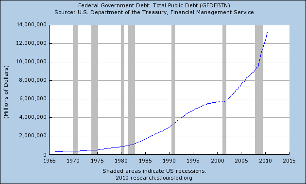 ![]() In a surprise move, the co-chairs of Barack Obama's national debt commission released their preliminary proposals to the media on Wednesday. The proposals are actually quite modest - they recommend that nothing be implemented until 2012 because of the weak economy, and their plan would not balance the federal budget until 2037 - but almost as soon as it was released Democrats and Republicans both started screaming bloody murder about how they would not support it. The truth is that virtually none of our politicians are willing to make the hard choices that would be necessary to get the national debt under control. Today, the U.S. national debt is rapidly approaching 14 trillion dollars and it is growing at an exponential rate. It is the single largest debt in the history of the world, and it has increased in size for 53 years in a row. It would be very difficult to understate the true horror of the debt that the U.S. federal government has accumulated. So what is the solution? As you will see below, there isn't one. In fact, it will be an absolute miracle if our leaders are able to even slow down the rate at which the debt is growing in the years ahead. The deficit reduction plan put forward by Erskine Bowles, a former White House chief of staff under Bill Clinton, and Alan Simpson, a former Republican Senator from Wyoming does not even have support from the rest of Barack Obama's national debt commission. There is no way that either most Democrats or most Republicans in Congress will ever accept it. But at least the Bowles-Simpson plan is making headlines around the world and has brought the national debt back to the center of the political debate in this country. In some ways, the Bowles-Simpson plan is a complete and total fantasy. For example, it assumes that the U.S. economy is going to fully recover and will experience solid growth for many years to come. That simply is not going to happen. The prosperity of the last couple of decades has been fueled by the biggest debt bubble in the history of the world, and there is no way that is going to continue. At some point the U.S. economy is going to fall apart like a house of cards. But even if the U.S. economy could magically meet the projections contained in the Bowles-Simpson plan, it still contains a whole host of "poison pills" which make it completely and totally unacceptable to both political parties.... *The plan calls for deep cuts to U.S. military spending. The Republicans will never go for that. *The plan reduces Social Security benefits to most retirees in future decades. The Democrats will never go for that. *The plan raises the Social Security payroll tax cap to $190,000. The Republicans will never go for that. *The plan envisions a very slow rise in the retirement age from 67 to 68 by 2050 and finally to 69 by 2075. The Democrats will never go for that. *The plan includes a "less generous" annual cost-of-living adjustment for Social Security benefits. Considering the fact that Social Security benefits are already not going to see an increase this upcoming year, this proposal is likely to upset a large number of seniors. *The plan calls for the federal tax on gasoline to approximately double by 2015. The Republicans would never go for that, and if that was ever implemented it would have a very serious negative impact on the economy. *The plan would eliminate the deductibility of mortgage interest payments. Millions upon millions of homeowners would be absolutely furious. *The plan would tax health benefits provided by employers. That would make millions of people very angry. *The plan also calls for huge cuts in farm subsidies. There are a lot less farmers than there used to be, but that would still be extremely unpopular. But the truth is that hard choices need to be made. The national debt is spinning wildly out of control. The U.S. government is essentially bankrupt. Unfortunately, the majority of the federal budget is made up of entitlement programs. Entitlement programs are not subject to budget freezes or budget cuts - unless Congress changes the underlying laws. But any change to major entitlement programs would potentially upset millions of voters. Not that there are not other areas that could be cut. Today, the average federal worker earns far more than the average private sector worker. In fact, wages for federal workers have been escalating at a frightening pace. In 2005, 7420 federal employees were making $150,000 or more per year. Today, 82,034 federal employees are making $150,000 or more per year. That is more than a tenfold increase in just five years. But any major cuts to federal spending are going to really upset a lot of voters, and our politicians really, really like to get re-elected. The kinds of cuts that are really needed will never get through the Democrats in Congress and the Republicans in Congress and signed into law by Barack Obama. There are just way too many things that both major political parties consider to be "untouchable". Meanwhile, the U.S. government debt continues to explode. The debt is already so big, interest on that debt is scheduled to escalate so dramatically, and we have made so many unsustainable promises regarding Social Security and Medicare that it is basically impossible to balance the federal budget at this point. If serious attempts were actually made to balance the budget in 2011, it would likely create a financial panic, and suddenly sucking over a trillion dollars in federal spending out of the system would crash the economy. The following are 15 facts that reveal just how obscene the U.S. national debt has become, and why it is now basically impossible to balance the budget of the U.S. government at this point.... #1 On average, the U.S. government accumulates about 4 billion dollars more debt each day. #2 In just the last 30 years the U.S. government has accumulated 12 trillion dollars more debt. #3 According to a U.S. Treasury Department report to Congress, 