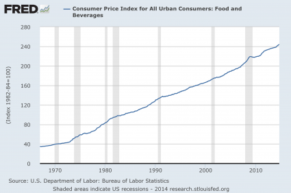 ![]() Thanks to the Federal Reserve, the middle class is slowly being suffocated by rising food prices. Every single dollar in your wallet is constantly becoming less valuable because of the inflation the Fed systematically creates. And if you try to build wealth by saving money and earning interest on it, you still lose because thanks to the Federal Reserve's near zero interest rate policies banks pay next to nothing on savings accounts. The Federal Reserve wants you to either spend your money or to put it in the giant casino that we call the stock market. But when Americans spend their paychecks they are finding that they don't stretch as far as they once did. The cost of living continues to rise at a much faster pace than wages are rising, and this is especially true when it comes to the price of food. Someone that I know wrote to me today and let me know that she had to shut down the food pantry that she had been running for the poor for so many years. It isn't that she didn't want to help the poor anymore. It was that she just couldn't deal with the rising food prices any longer. Now she is just doing the best that she can to survive herself. Perhaps you have also noticed that food prices have gotten pretty crazy lately. In particular, meat prices have become absolutely obscene. For example, the average price of ground beef has risen to a new record high of over $4.09 a pound. Over the past twelve months, that works out to a whopping 17 percent increase... The average price for a pound of ground beef climbed to another record high--$4.096 per pound--in the United States in September, according to data released today by the Bureau of Labor Statistics (BLS).The "intellectuals" over at the Federal Reserve insist that "a little bit of inflation" is good for an economy, but the truth is that inflation slowly robs us of our buying power. In a previous article, I shared a chart that showed how food inflation has risen dramatically since the year 2000. For this article, I wanted to show how food inflation has risen since the 1970s. As you can see, the rise in food prices has been absolutely relentless for more than 40 years... If our paychecks were going up at the same rate or even faster that would be okay. But they aren't. In fact, CNN is reporting that our paychecks have fallen back to 1995 levels... Americans also don't feel any better off. While more people may have jobs, they aren't bringing home fatter paychecks. Wages and income have remained stagnant for years, making it tough for folks even though inflation is low. Median household income, which stood at $51,939 last year, is back to 1995 levels.This is one of the primary reasons why the middle class is disappearing in America. The purchasing power of our dollars is continually diminishing. And this could be just the beginning. Right now, severe drought is affecting some of the most important agricultural areas around the globe. Most people are aware of the nightmarish drought in California, but did you know that things in Brazil are even worse? Brazil is one of the most important food exporters in the world, and so they definitely need our prayers. In addition, a "black swan event" such as a worldwide explosion of the Ebola pandemic could quickly drive food prices into the stratosphere. Just this week, we learned that food prices in the Ebola-stricken regions of Liberia, Guinea and Sierra Leone have already risen by an average of 24 percent... Infection rates in the food-producing zones of Kenema and Kailahun in Sierra Leone, Lofa and Bong County in Liberia and GuDeckDedou in Guinea are among the highest in the region. Hundreds of farmers have died.If you have been storing up food, I think that you will be very happy with your decision in the long run. Without a doubt, food prices are only going to be going up from here. But the Federal Reserve continues to insist that inflation is under control. One of the ways that they make the "official numbers" look good is by playing accounting games. They regularly change the way that inflation is calculated in order keep everyone calm. You don't have to take my word for it. Posted below is an excerpt from an article by Mike Bryan, a vice president and senior economist in the Atlanta Fed's research department... The Economist retells a conversation with Stephen Roach, who in the 1970s worked for the Federal Reserve under Chairman Arthur Burns. Roach remembers that when oil prices surged around 1973, Burns asked Federal Reserve Board economists to strip those prices out of the CPI "to get a less distorted measure. When food prices then rose sharply, they stripped those out too--followed by used cars, children's toys, jewellery, housing and so on, until around half of the CPI basket was excluded because it was supposedly 'distorted'" by forces outside the control of the central bank. The story goes on to say that, at least in part because of these actions, the Fed failed to spot the breadth of the inflationary threat of the 1970s.It is all a game to them. It is all about getting to the "right number" to release to the public. But anyone that goes to the grocery store knows what has been happening to food prices. The next time you get to the checkout register and you feel tempted to ask the cashier what organ you should donate to pay for your groceries, please keep in mind that it is not the fault of the cashier. Instead, there is one entity that you should blame. Blame the Federal Reserve - their policies are slowly pushing the middle class into oblivion. |