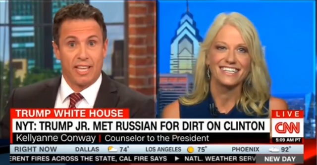 “Doesn’t this bother anybody there?” Conway asked, adding “I think America matters,” as the subjected moved to the latest media attempt to link Trump to Russia, Donald Trump Jr.’s alleged June 2016 meeting with a Russian lawyer.