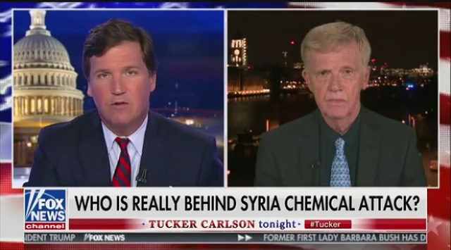 ![]() Fox News host Tucker Carlson continued to question the narrative on Syria on Tuesday by interviewing former UK Ambassador to Syria Peter Ford.Ford told Tucker, "It's not certain by any means that [the attack in Douma] was a chemical attack," citing the work of Robert Fisk and others who visited Douma to investigate. Transcript via The Daily Caller: “There are reports from Western journalists who were in Douhma yesterday, reports that they could find no folks would confirm that there’d been a chemical attack,” Ford said. “They went actually to the hospital where it was–where those videos were filmed, they spoke to doctors, named doctors, so this can be checked, who said that there was no chemical attack.”Senator Rand Paul also questioned the attack, saying: "Either Assad did not carry out the attack, or he is the dumbest dictator on the planet Earth." Tucker also delivered an epic monologue on how leftists would rather risk nuclear war with Russia than admit American voters don't like our "ruling class." Russia has thousands of nuclear bombs which could blow up the entire planet multiple times over. A computer glitch or false alarm has the potential to trigger a nuclear holocaust, but our ruling class couldn't care less. Such a scenario almost happened in 1983 due to a false alarm: Our insane rulers would rather be annihilated in a nuclear holocaust than lose their grip on power. Follow InformationLiberation on Twitter, Facebook and Gab. |