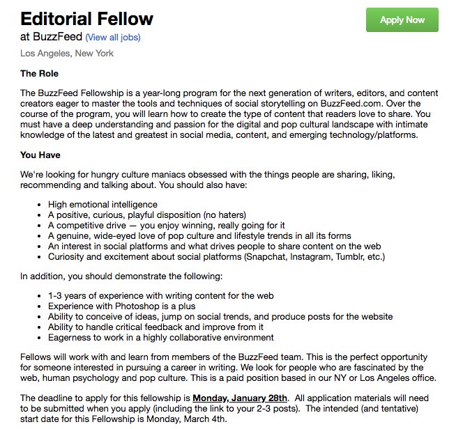 Former Buzzfeeder Sam Stryker asked in the comments if he should apply for the job:
