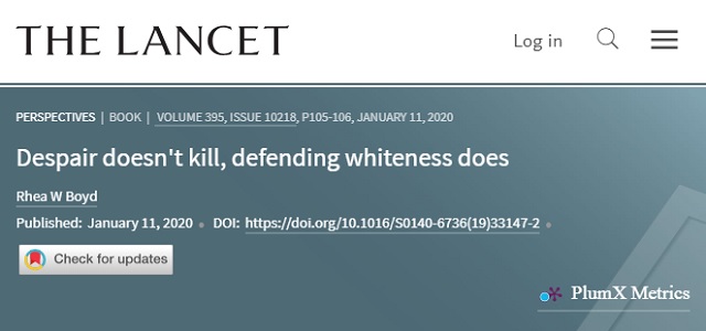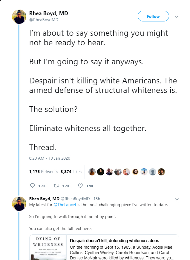 Lancet: The Only Way to Stop Racism is 'to Eliminate Whiteness All Together'by THOMAS D. WILLIAMS, PH.D.Breitbart Jan. 14, 2020 |