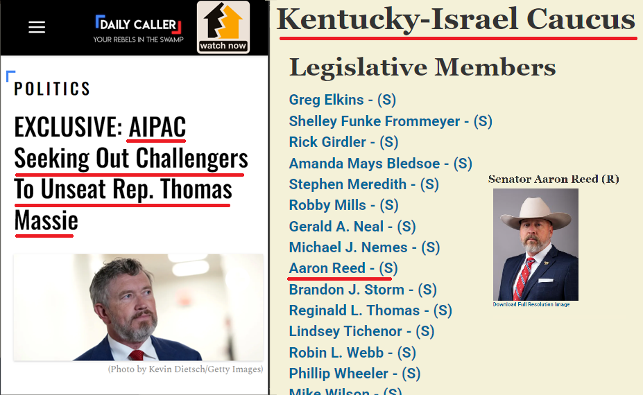 Reed is a member of the Kentucky-Israel Caucus, which "calls on the leaders of the United States to do everything they can to support Israel." The Daily Caller reported earlier this week that AIPAC was recruiting Massie's challenger. ![]() President Trump's PAC this week also launched a $1 million ad buy to smear Massie as a pro-child genital mutilation terrorist.