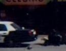 This devastating photo tells the tragic story of a family dog, shot dead by a police officer as he pursued a robbery suspect on Sunday.